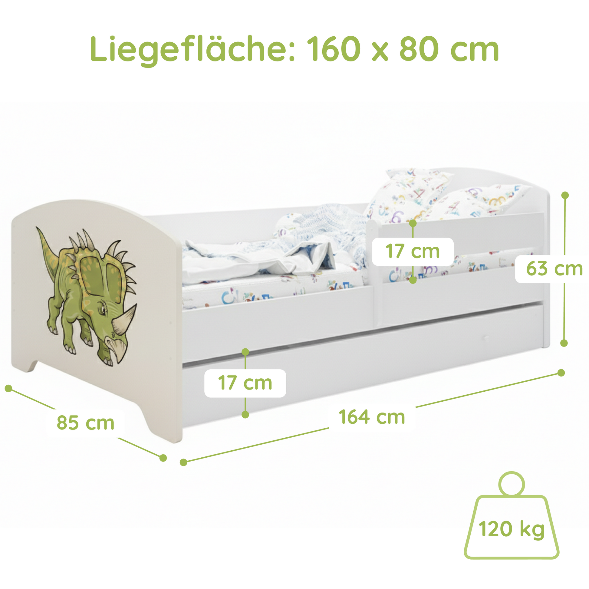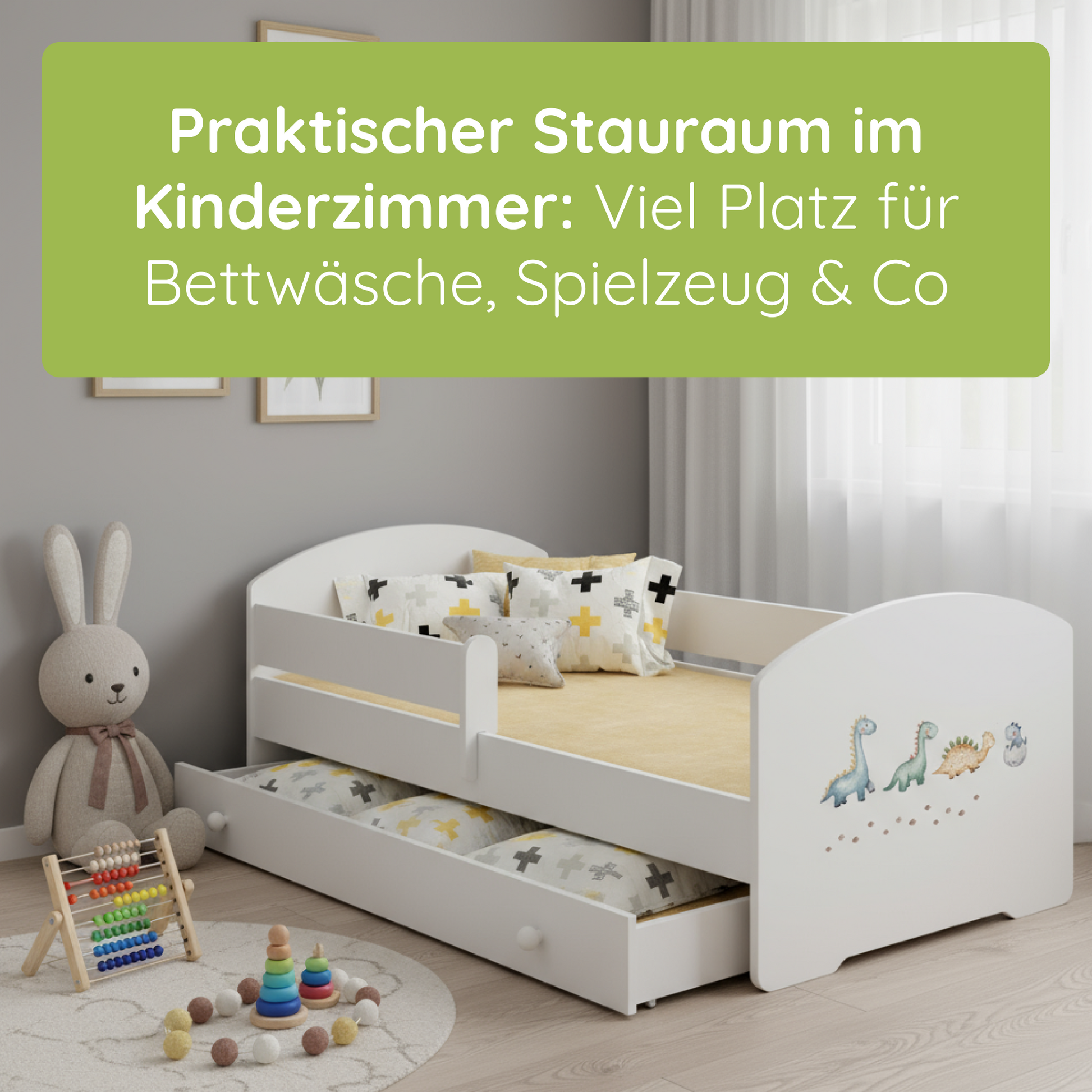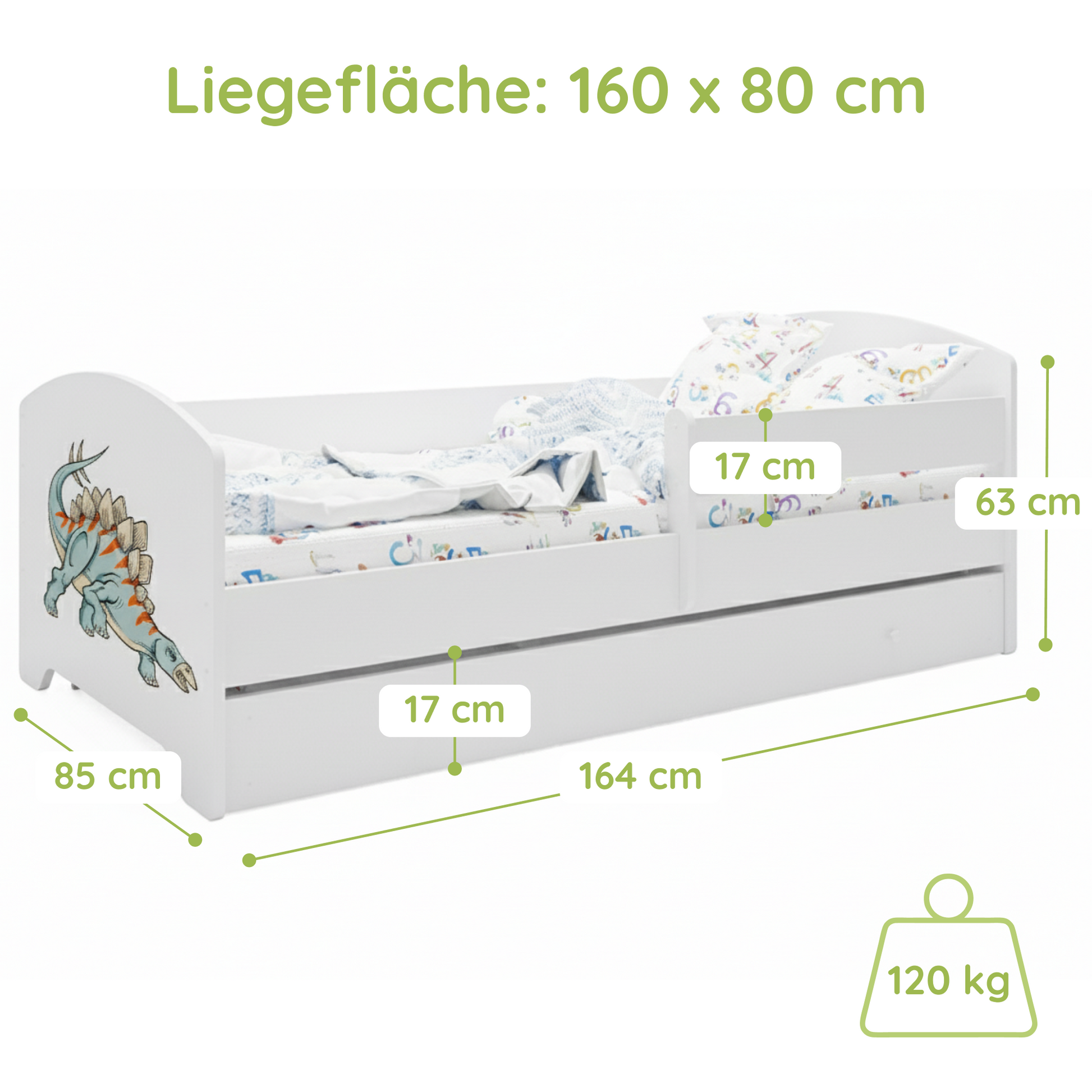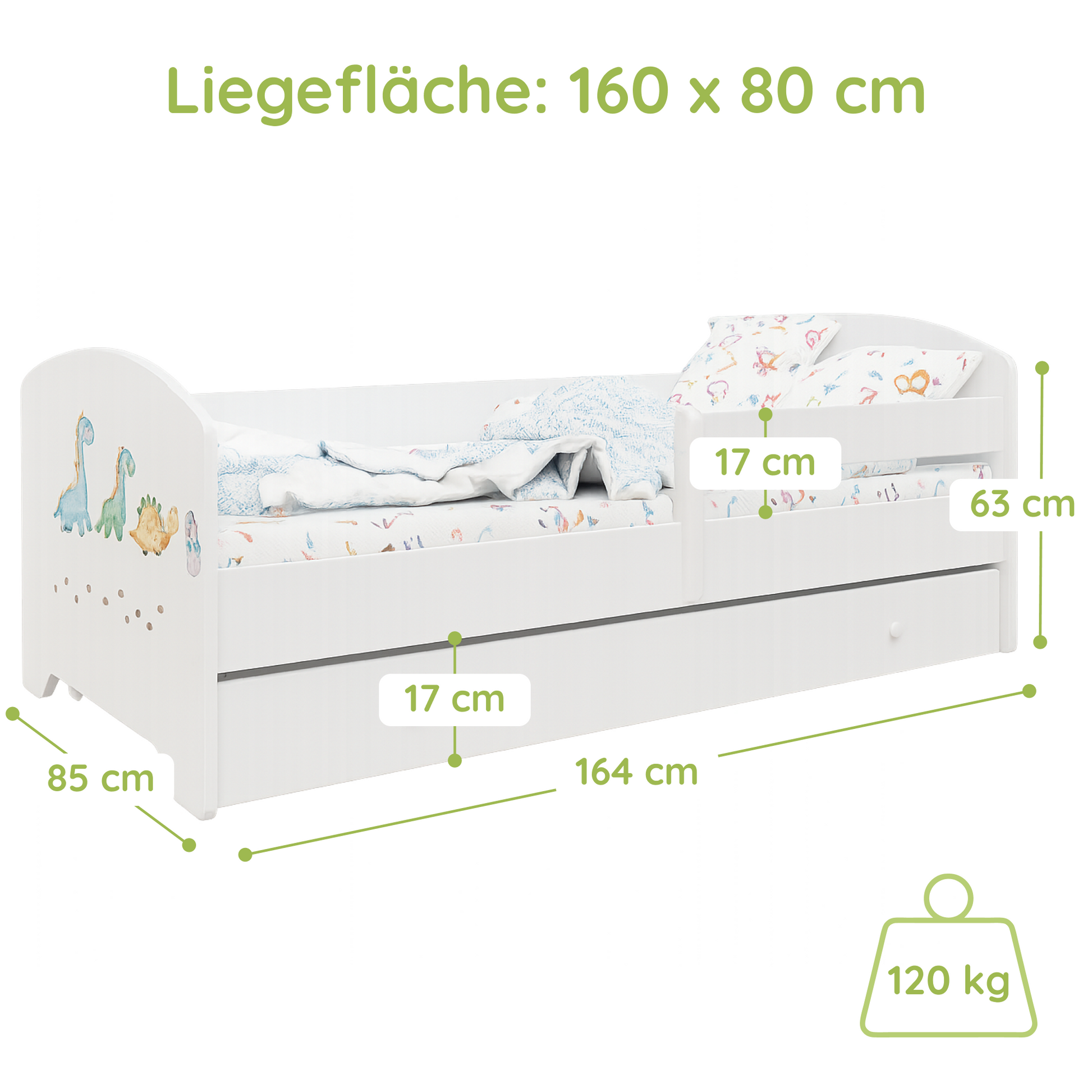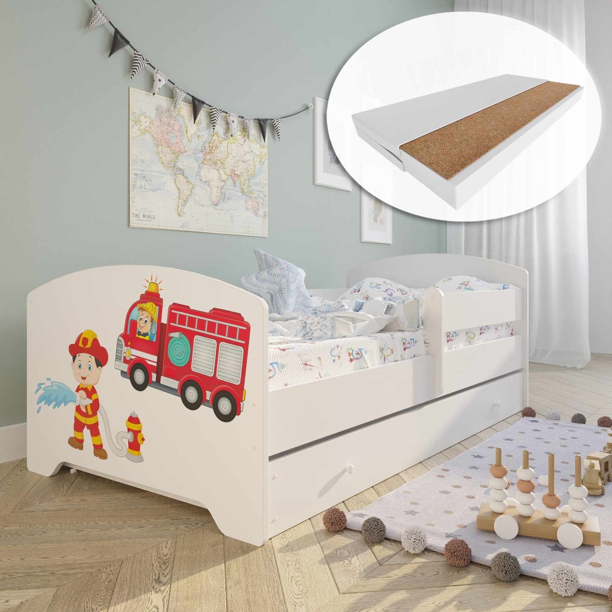 Kids Collective Kinderbett 70x140 / 80x160 Komplett Set inkl. Matratze, Lattenrost, Schublade & Rausfallschutz | Einzelbett für Kinder von 2 – 10 Jahren | weiß mit wählbarem Motiv