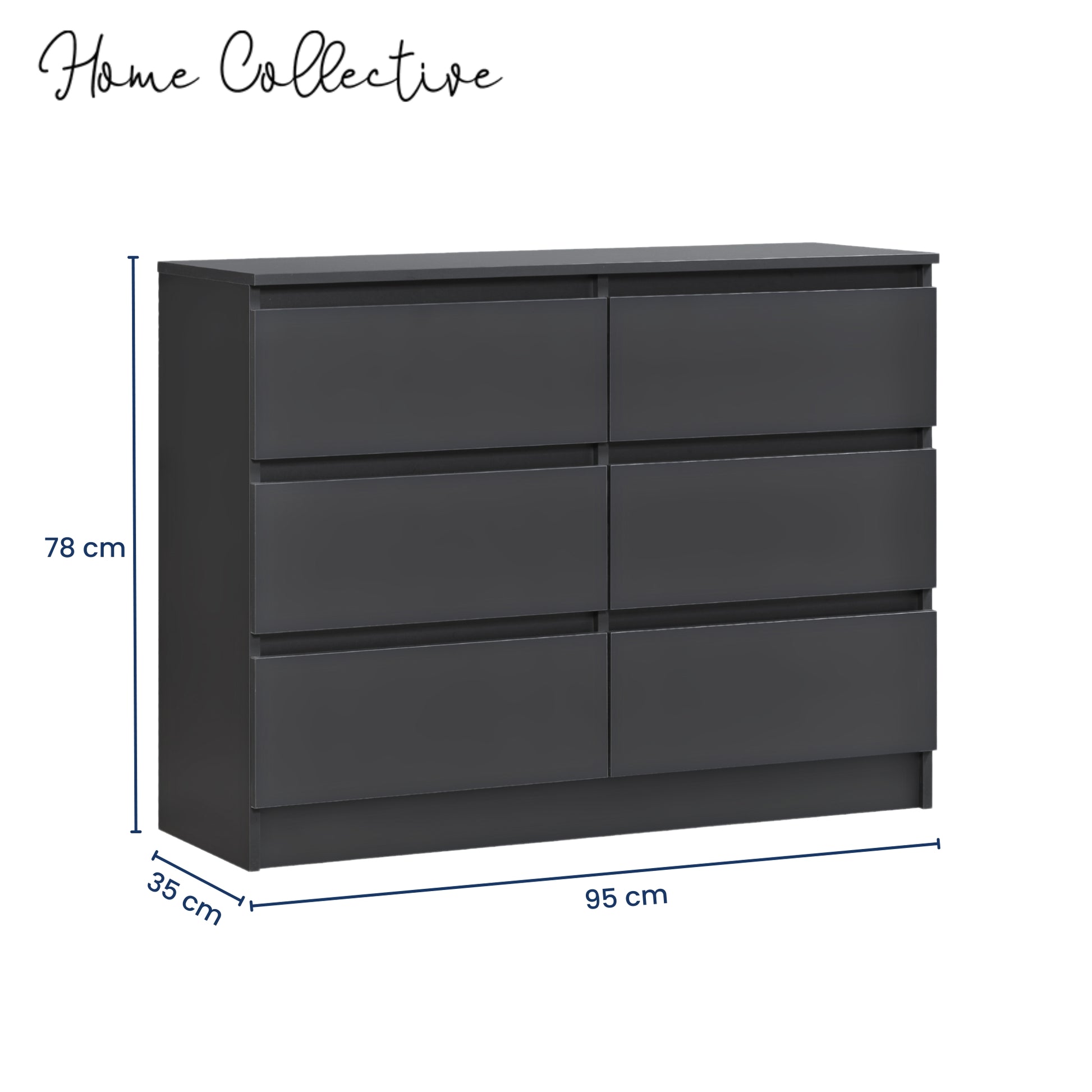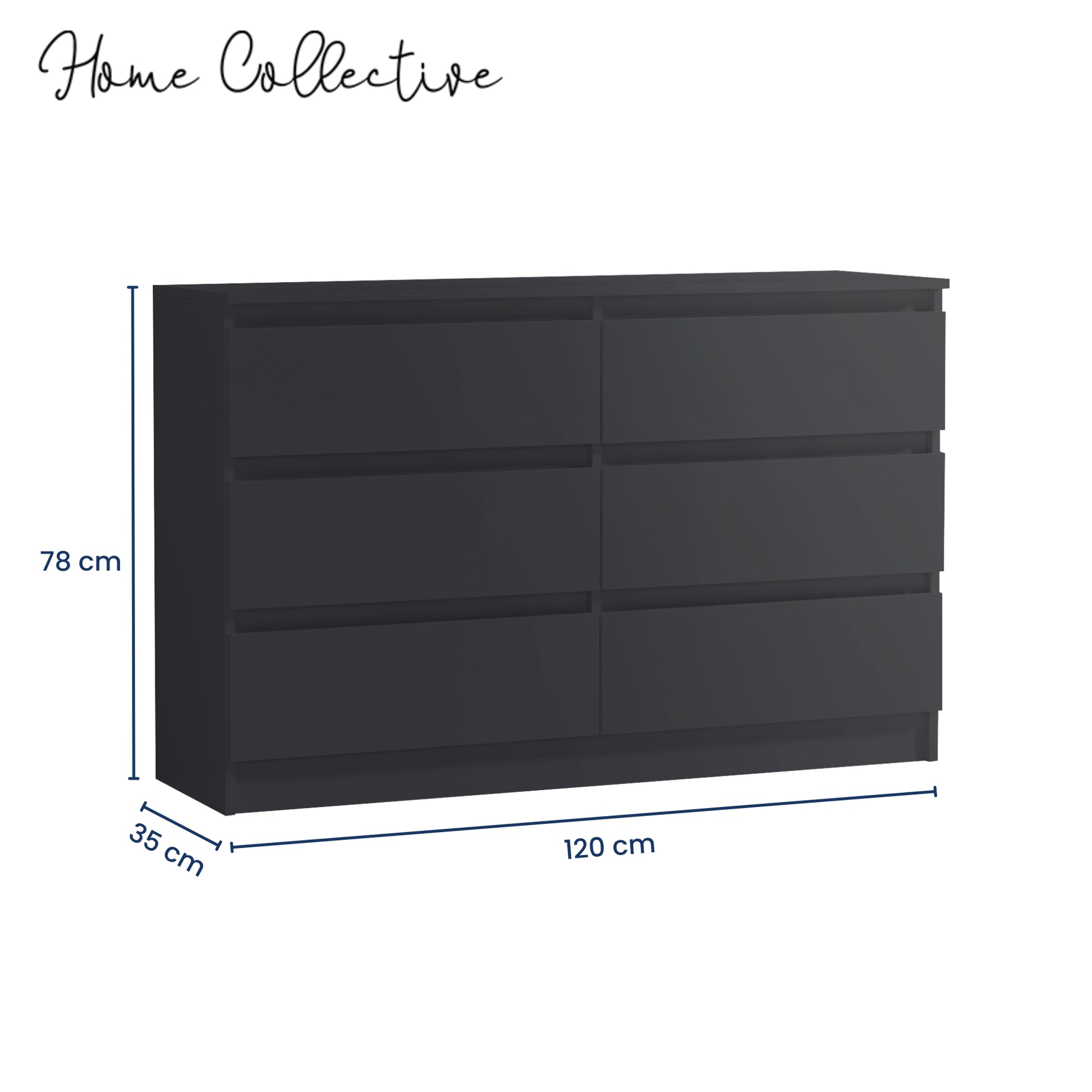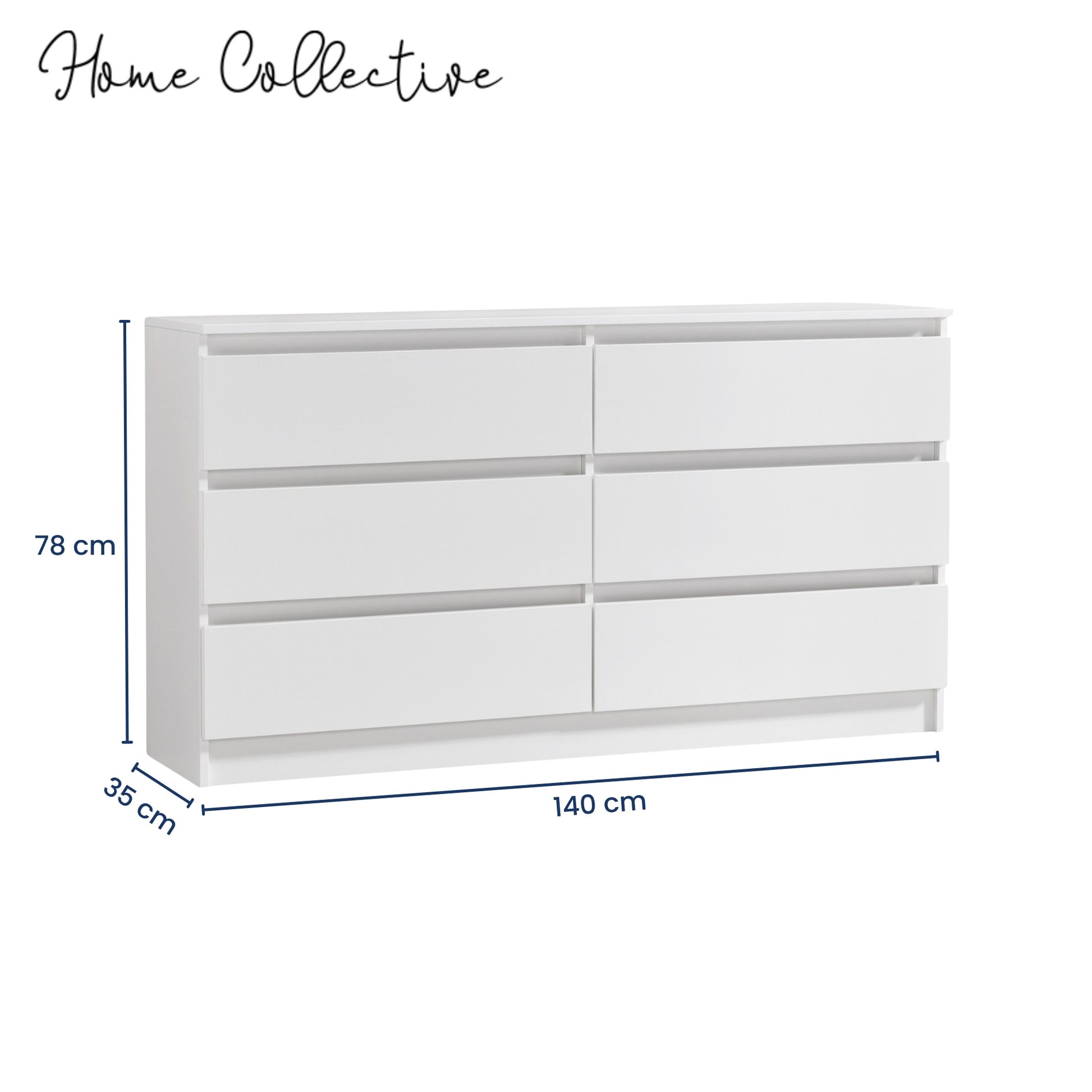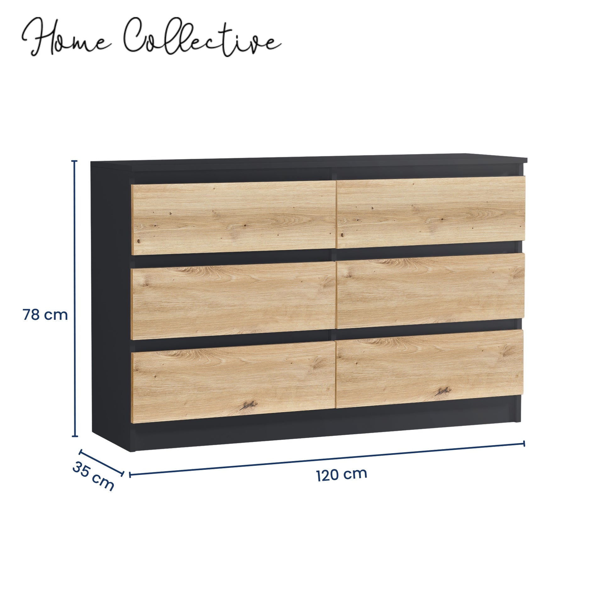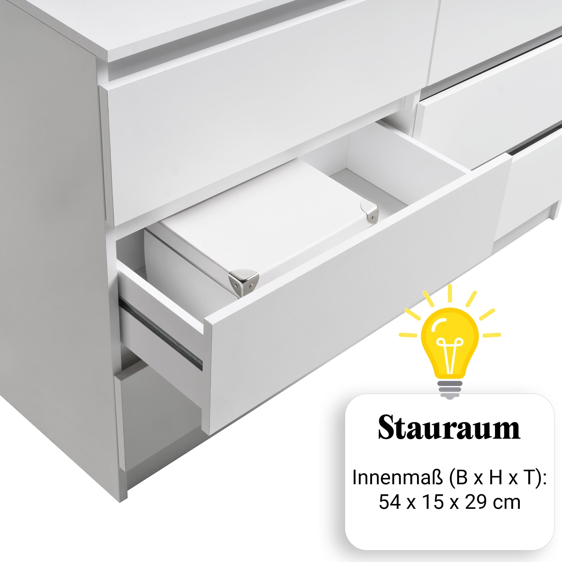 Kommode mit 6 Schubladen 95 | 120 | 140 cm breit Kommode Holz Schrank Kommode mit Schubladen Sideboard Highboard Anrichte Schlafzimmer Wohnzimmer Flur Büro Organizer