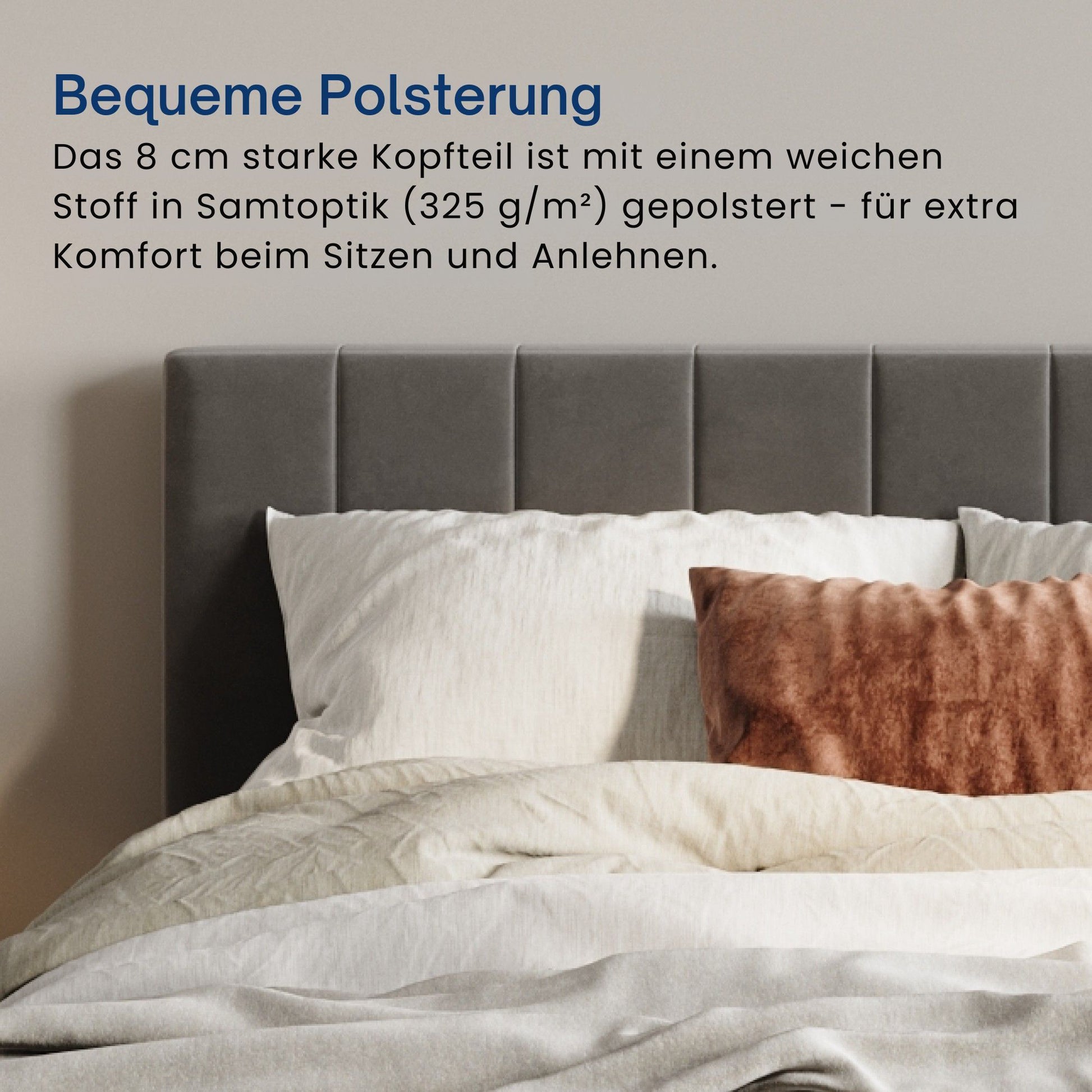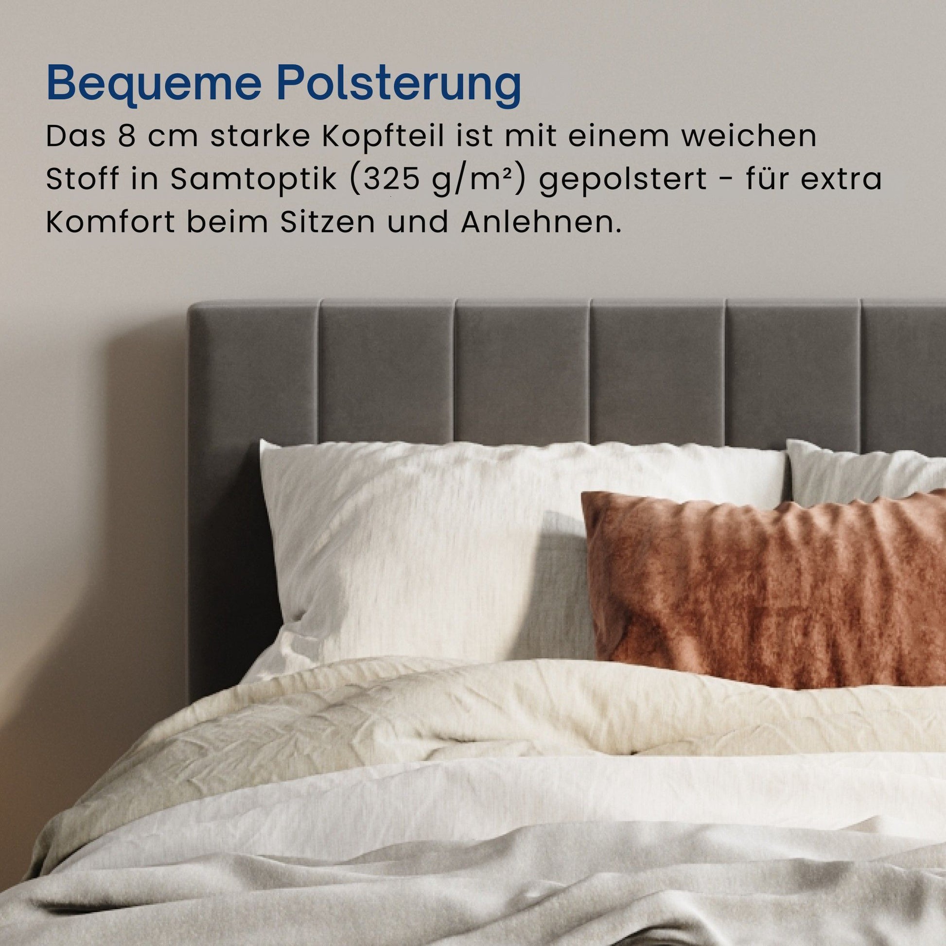 - Material: Polyesterstoff (325g/m²) in Samtoptik, Gestell: Metall, Lattenrost: Holz