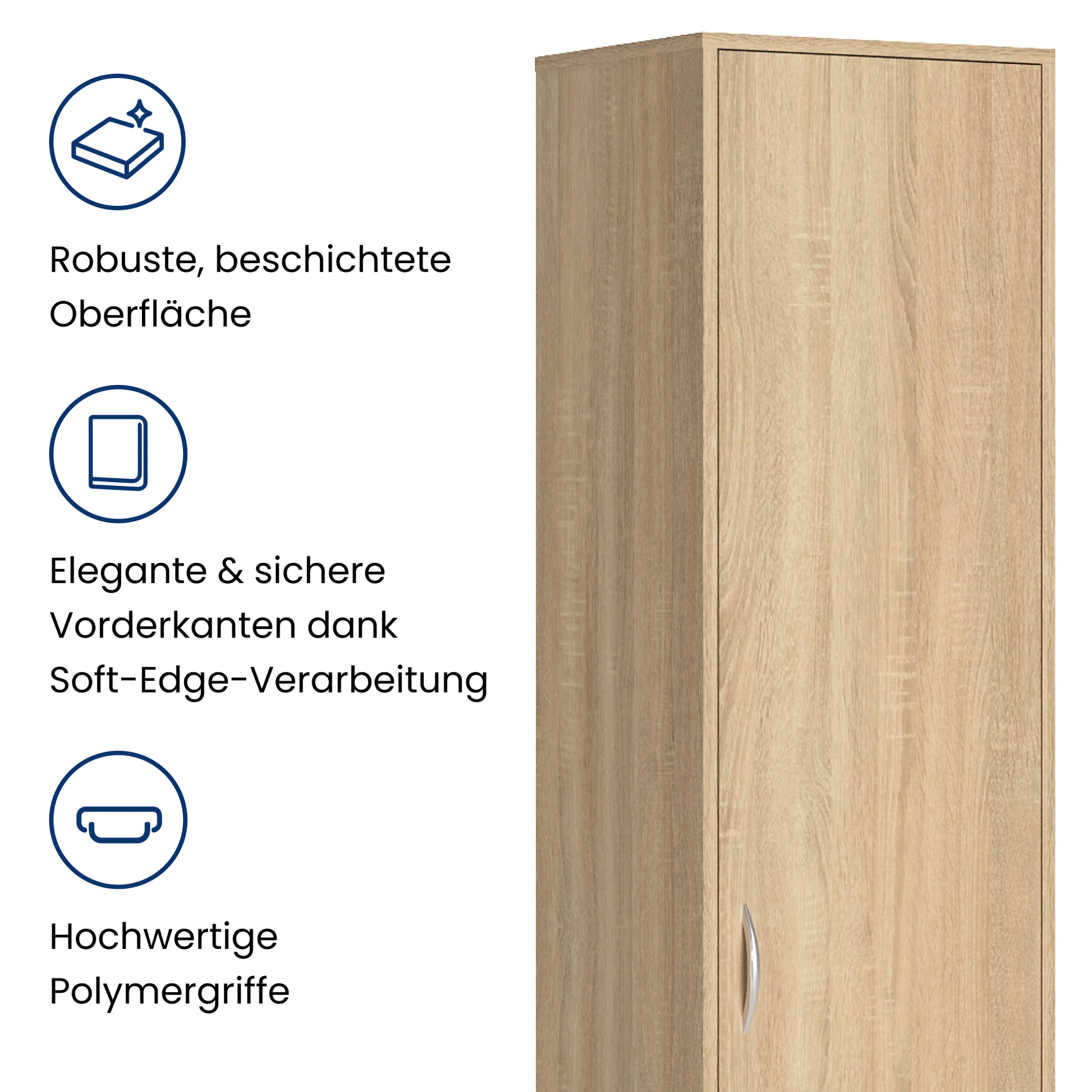 - Ausstattung: 1 Tür, 4 Einlegeböden, 5 Fächer, Griffe aus hochwertigem Polymermaterial