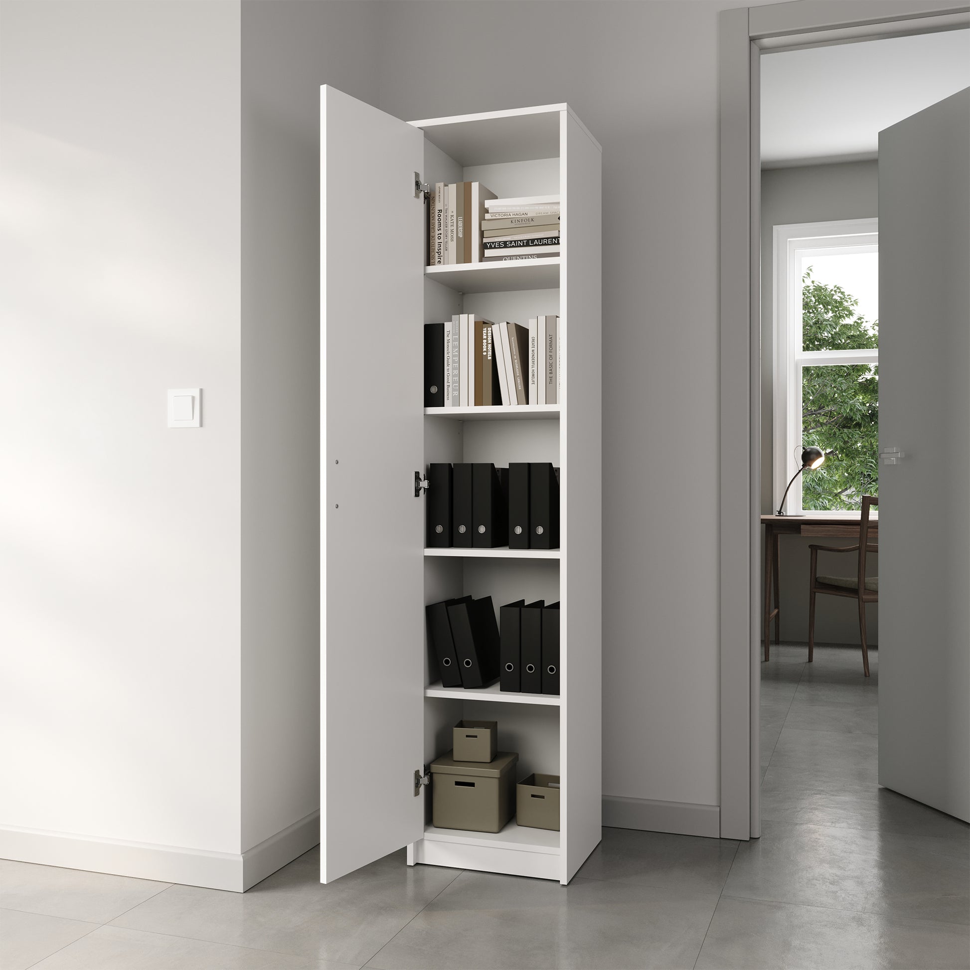 • Design: Schmal, geradlinig und vielseitig einsetzbar – als Büroschrank, Vorratsschrank oder Mehrzweckregal