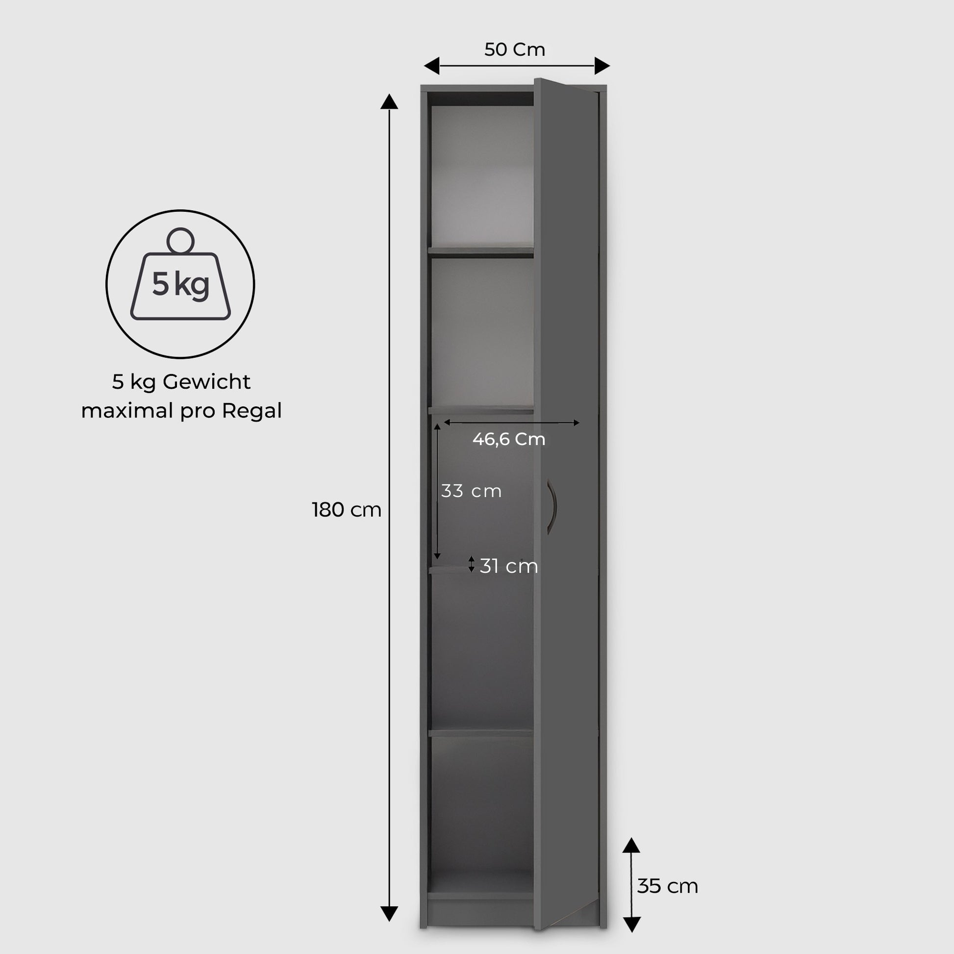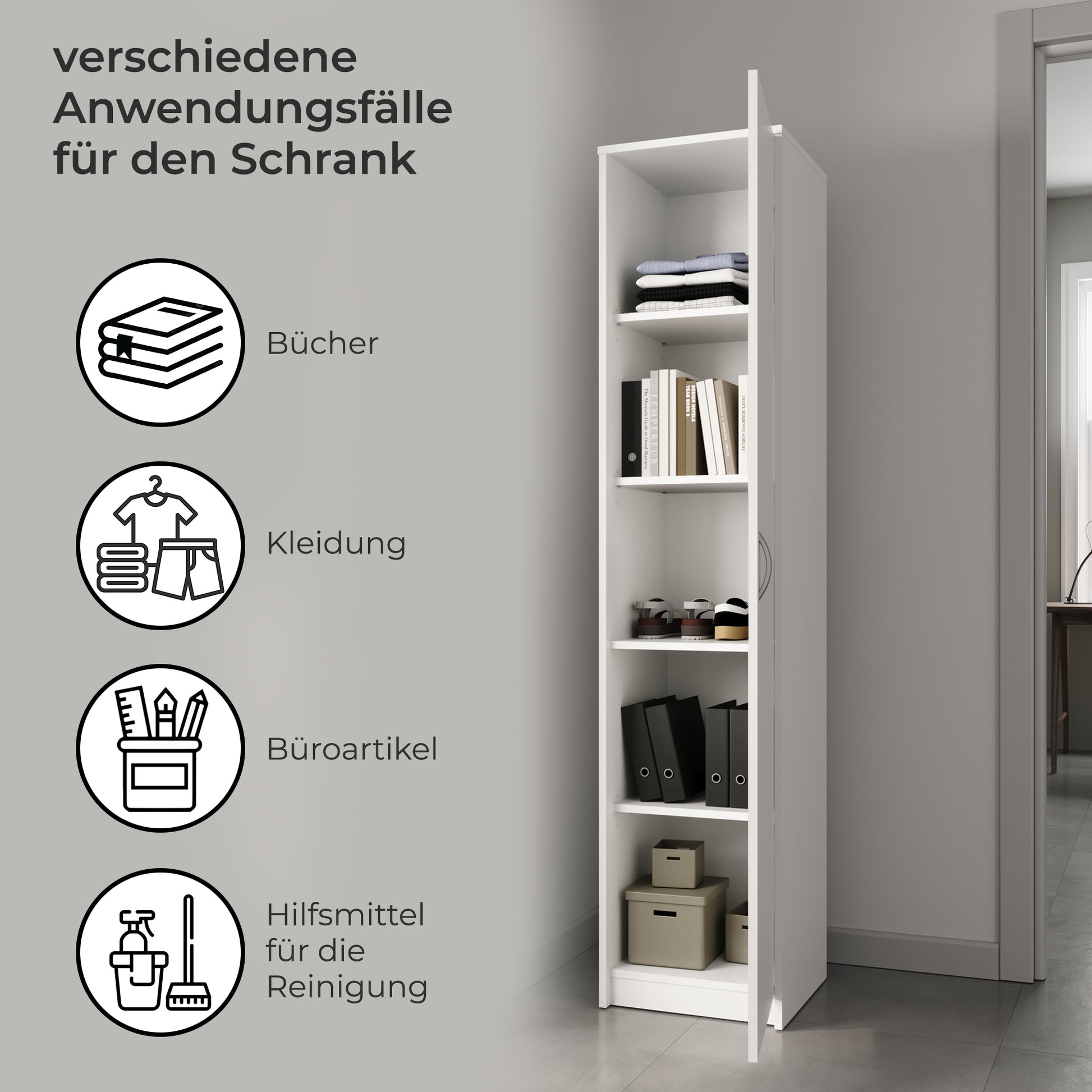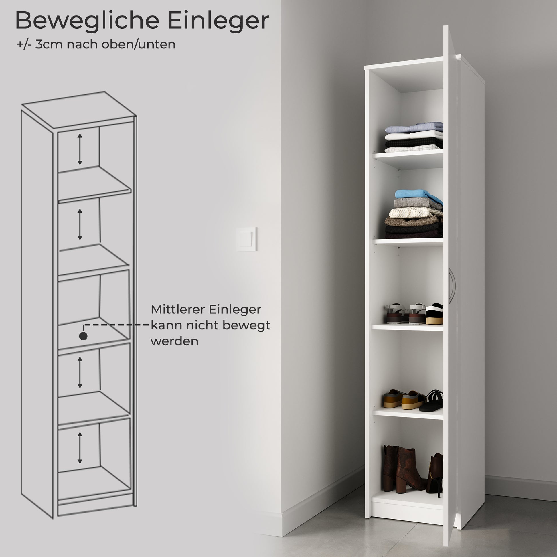 Schrank Mehrzweckschrank 40 und 50 cm Breite 180 cm Höhe mit vier Einlegeböden schmaler Aktenschrank Organizer Kleiderschrank aus MDF Holz